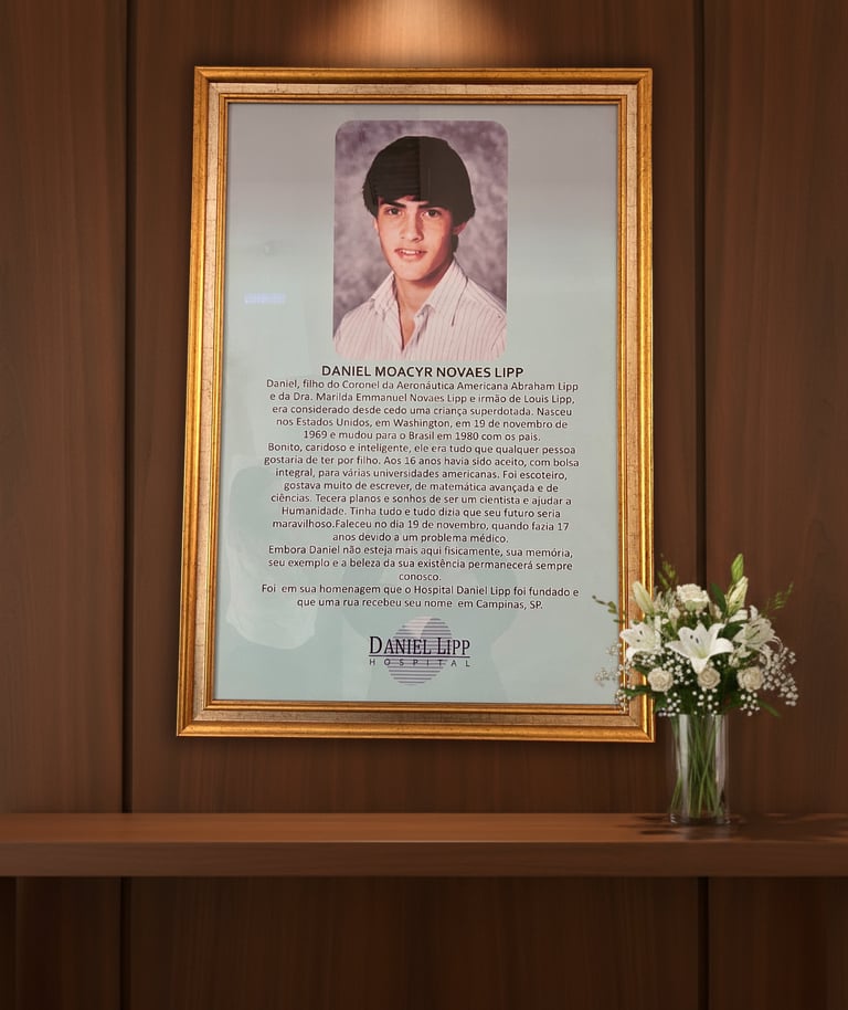 Nossa trajetória começou antes mesmo da criação, quando o Dr. Mário Novais adquiriu o antigo Hospital Clinirio. Para aprimorar a infraestrutura já existente, em 07 de agosto de 2000, o médico fundou o Hospital Daniel Lipp, em homenagem ao seu superdotado afilhado Daniel Moacyr Lipp, falecido precocemente em 1986, aos 17 anos.